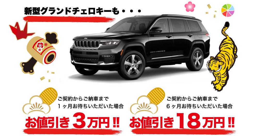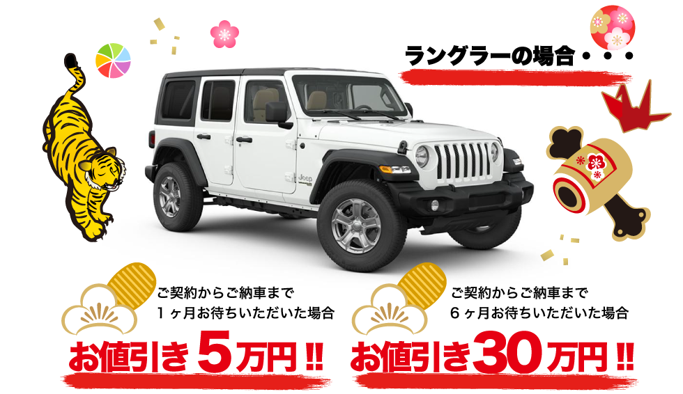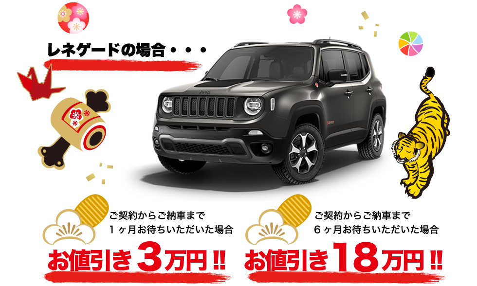 JEEPOSAKAでは、お客さまに少しでもワクワクしながらお車の到着をお待ちいただくため、ご契約からご納車まで待てば待つほどお得になるキャンペーンを開催いたします!